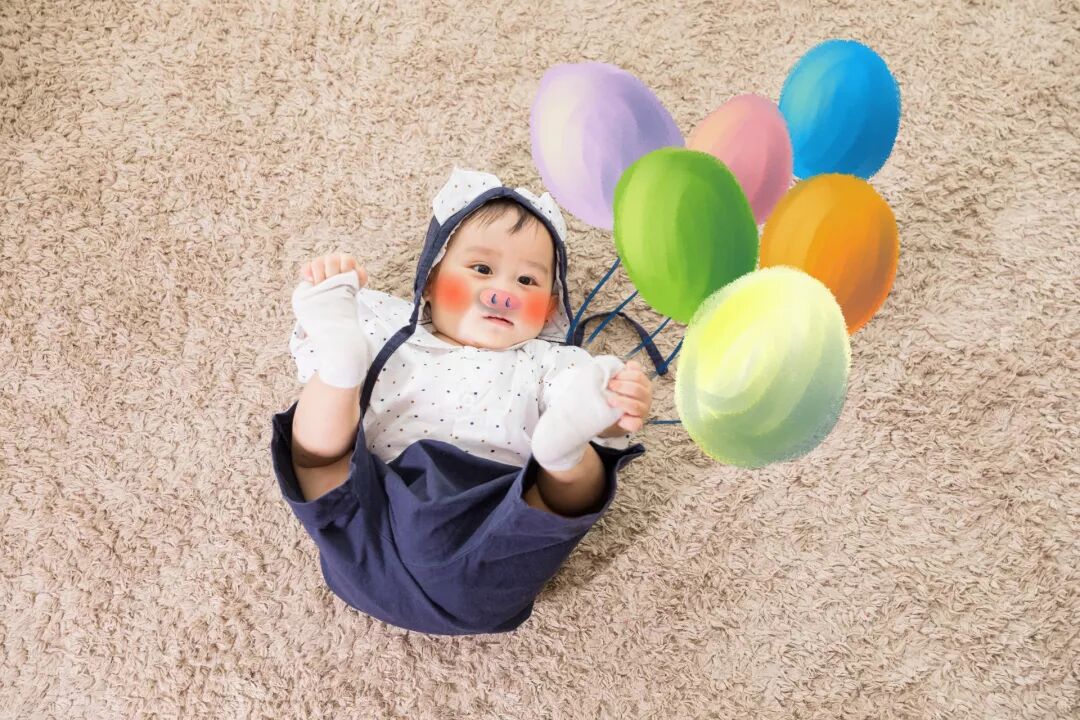 在宝宝一边脚踝上松松地系上一个气球,只要TA一踢腿,就能看到气球随着腿移动。