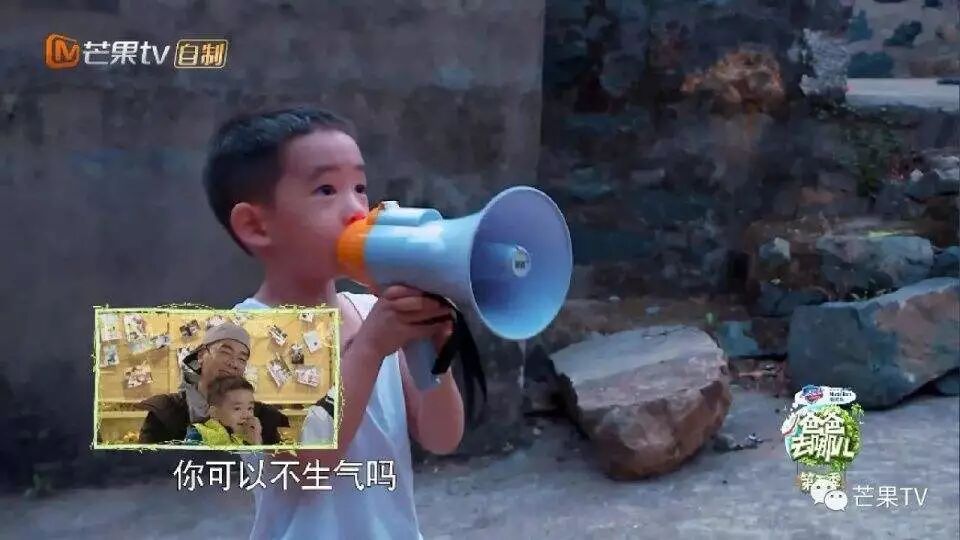 《爸爸去哪儿》中陈小春嫌弃儿子Jasper走路慢,做事不专注,忍不住在镜头前暴怒,骂了Jasper一句,Jasper不但没有哭,反而拿起手中喇叭反问父亲:“你现在能不生气了吗?”。