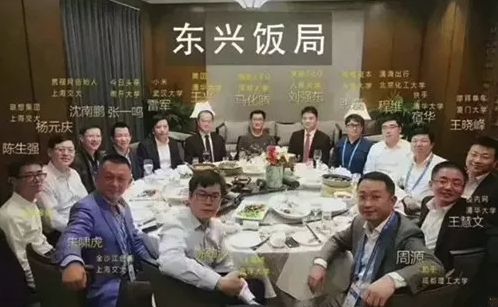 怕他不懂,我又找出了曾经网上流传的这张东兴饭局图给他,我问他认识里面的几个人,这是全国顶级大佬最多的饭局。