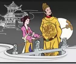 相传唐玄宗与申天师及道士鸿都中秋望月,突然玄宗兴起游月宫之念,于是天师作法,三人一起步上青云,漫游月宫。但宫前有守卫森严,无法进入,只能在外俯瞰长安皇城。在此之际,忽闻仙声阵阵,清丽奇绝,宛转动人!唐玄宗素来熟通音律,于是默记心中。这正是“此曲只应天上有,人间能得几回闻!”日后玄宗回忆月宫仙娥的音乐歌声,自己又谱曲编舞,这便是历史上有名的“霓裳羽衣曲”。