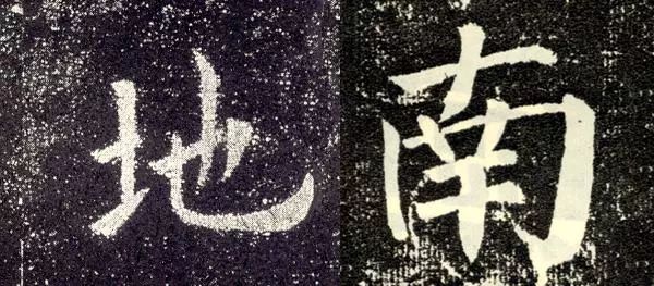 三、疏密: 与印刷体比较,楷书要求疏密变化更突出,如“南”、“地”等字。