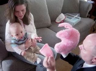 梅尔佐夫还发现,宝宝们不只会当面模仿你,他们还会延迟模仿(deferred imitation),这种方式相比即时模仿而言,展示了婴儿强大的记忆力。