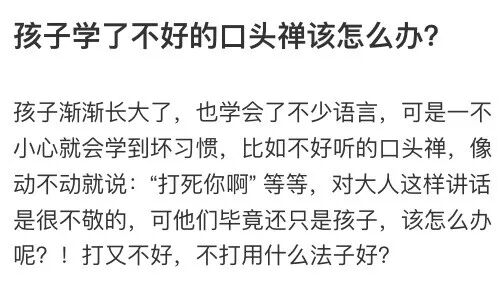 如果我们反复跟孩子说「不许说这句话!」,反而是让孩子感受到这句话的分量,还一遍遍地帮孩子加深了记忆,孩子会越说越多,还会慢慢酿成逆反心理。