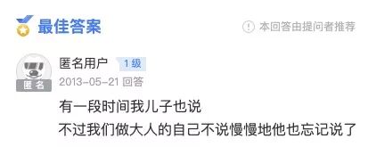 看,最佳答案说:有一段时间我儿子也说,不过我们做大人的自己不说,慢慢地他也忘记说了。