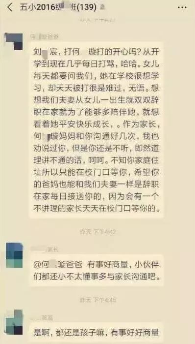现在网上还流传着一张家长群里的消息:女生被男生天天打骂,而且女生家长多次沟通无果。
