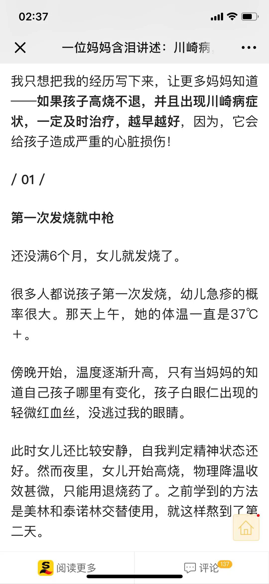 当时我看完文章之后大受震动,觉得孩子长大真不容易,那是我第一次知道这个病。