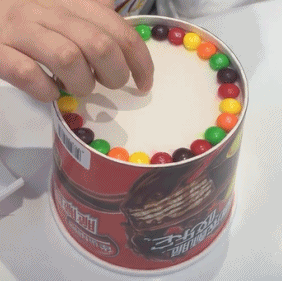 沿着盘子的边缘,把糖果铺成一个圈。
