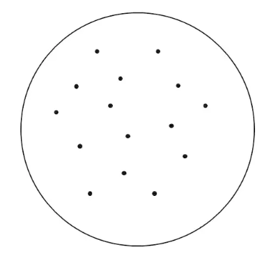 要求孩子用眼睛看,不能用手指点,数数有多少个黑点。如果孩子很容易就数出来了,家长可以再添上一些黑点,让孩子再数一次。