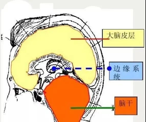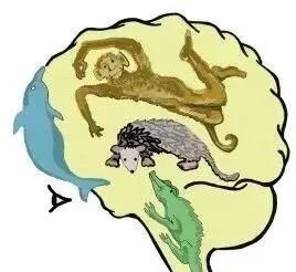 从进化角度看,又可以说成是“爬虫脑”、“哺乳类脑”和“灵长类脑”(由下至上)。