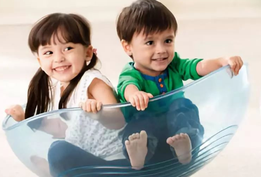 训练要求:让孩子坐在转椅内,家长在一旁旋转椅子,速度逐渐加快。