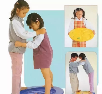 难度设置:a开始时为避免孩子紧张,可让其双手抓住椅子的扶手;b孩子习惯后要求其两手自然放在腿上靠身体控制重心,并闭上眼睛。如果孩子不配合,可用布带将其双眼蒙住。