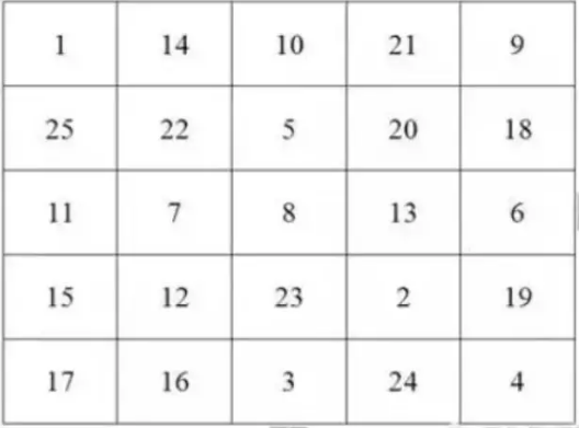 数完 25 个数字所用时间越短,注意力水平越高。(每次数字顺序都打乱重新填写)