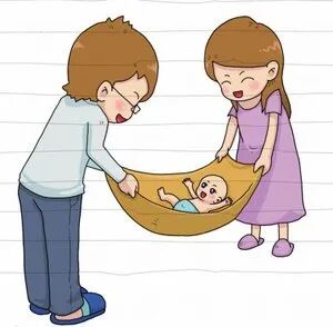 准备一条大毛巾被或床单平铺在床上或地毯上,让孩子躺在中间,两位家长各抓毛巾被的两个角开始做左右和前后摇晃,摆幅由小到大,反复进行3~5分钟。