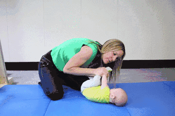 注意:训练时,成人要配合儿童的力度,避免儿童因不当用力而受伤。