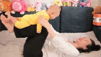 首先家长需自己平躺于地上,将宝宝以俯卧的姿势放在家长的小腿上,用手拉起宝宝的两只胳膊,逐渐伸展后抬起腿来,宝宝如同飞翔一般。多次重复这一系列动作。