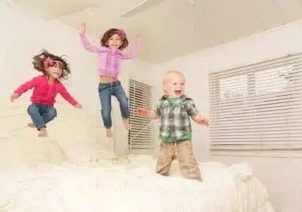 家长拿出一条毛巾被平铺在床上,让孩子躺在毛巾被上,用毛巾被将孩子卷起来,直到毛巾被全部被卷完,把孩子紧紧包裹起来,只露个头。然后再抓着毛巾被的一头,将毛巾被迅速打开,让孩子从毛巾被里面滚出来。在活动中家长一定要注意孩子的安全,避免摔倒。这个过程中,会给孩子很强烈的本体觉的输入和前庭觉及触觉的输入。这个游戏非常好,但是要根据孩子的承受能力来控制你的速度。