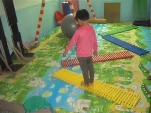 父母可以在家里布置各式不同材质的地毯, 让自闭症孩子在地毯上爬或走,或从事任何游戏,让宝贝接受不同材质的刺激。等到孩子更大些了,妈妈就可以做难度稍高的设计,将地毯高度任意变化,让宝宝在不同高度的地毯上,从事各种游戏,也可以在地毯上增加一些障碍物。这个游戏对孩子的触觉起到一个很好的锻炼作品,尤其对于一些触觉敏感的孩子尤为重要。