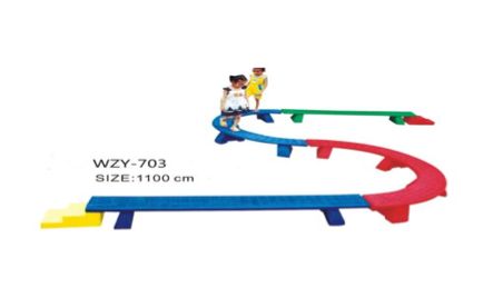 训练要求:在地上用不粘胶粘出一条S型线段,让孩子从一端走到另外一端。