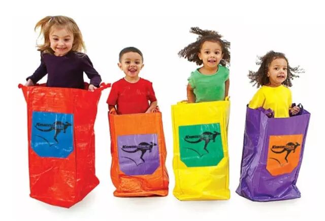 玩法:家里不用的大口袋,孩子在袋子里站直,双手抓住袋口的两边,做原地起跳和向前袋鼠跳。家长可以备一个更大的口袋,跟孩子一起亲子袋鼠跳。我和孩子最爱袋鼠跳,小编会边跳边唱,“我是袋鼠妈妈你是小袋鼠,一起钻进袋子快乐跳跳跳。”