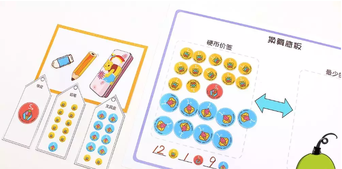 爸爸妈妈可以先和娃玩简单的换算游戏,用钱币的具体换算来演示一下。