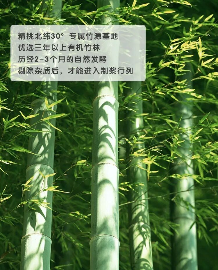 【主要成分】:采用原生竹浆,竹纤维更粗更长,长短纤维柔化依据黄金比例搭配