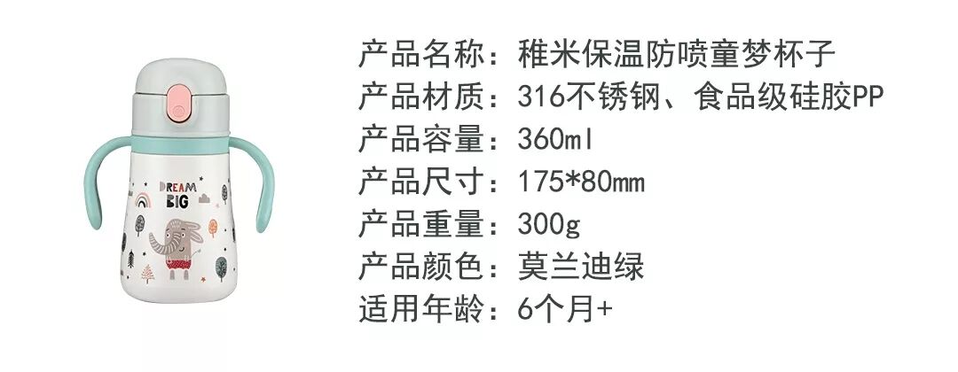 温馨提示:冬天宝宝喝奶慢,奶容易凉,这款保温杯就完美解决了这个问题。还在用奶瓶喝奶的宝宝也能更快戒掉奶瓶,防止奶瓶龋齿的发生。