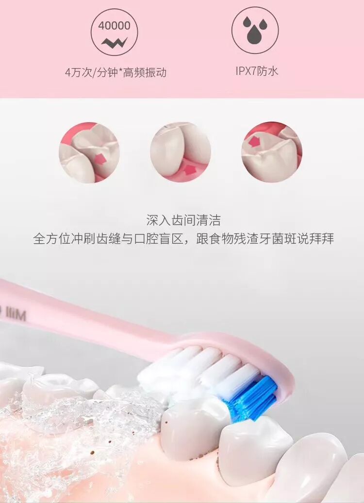 (注:虽然防水,但牙刷手柄请勿长时间在水里浸泡哦)