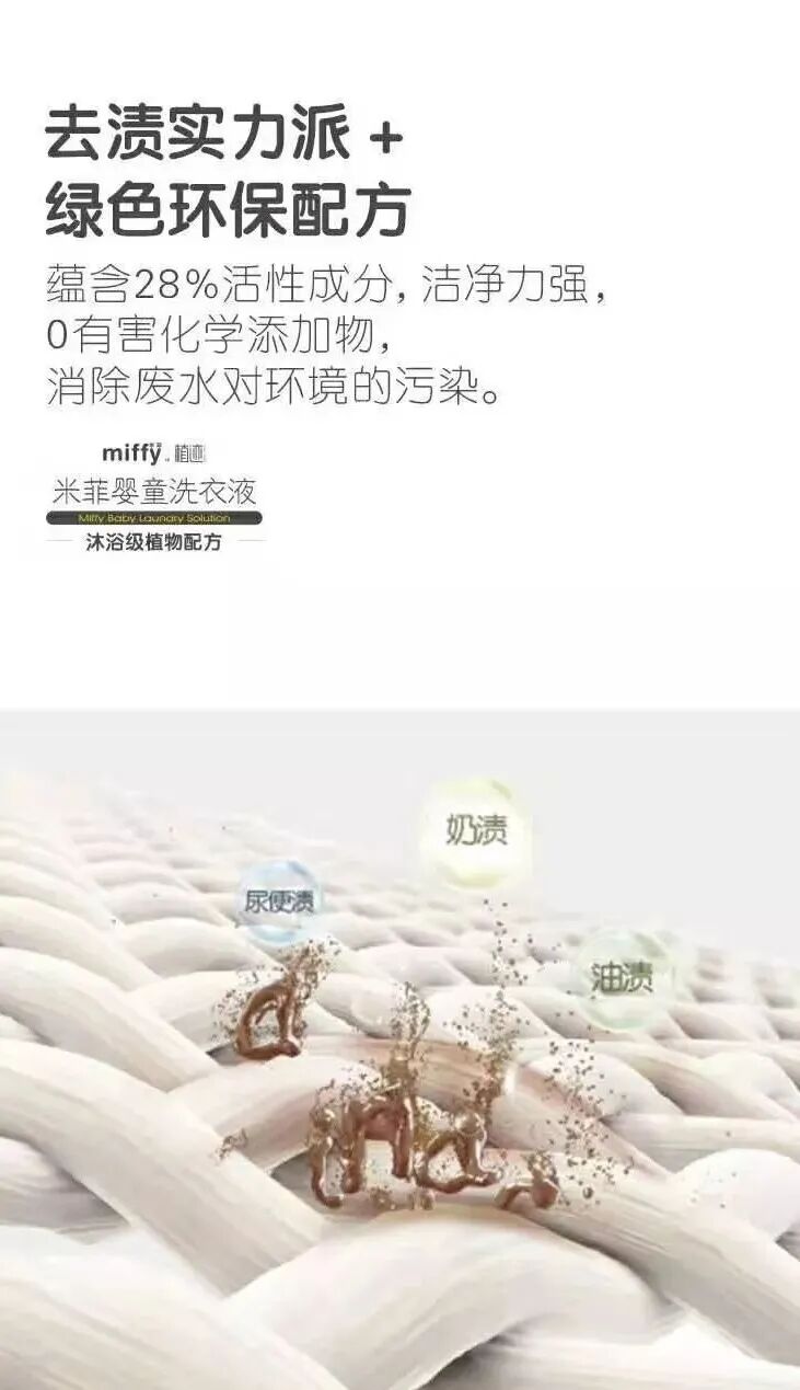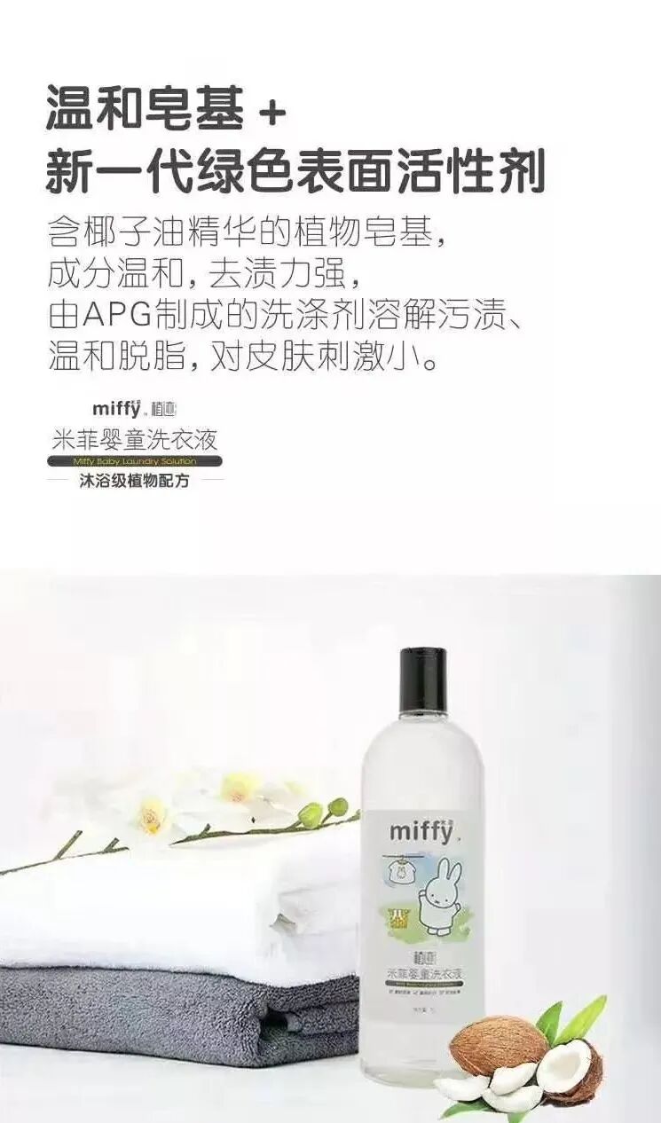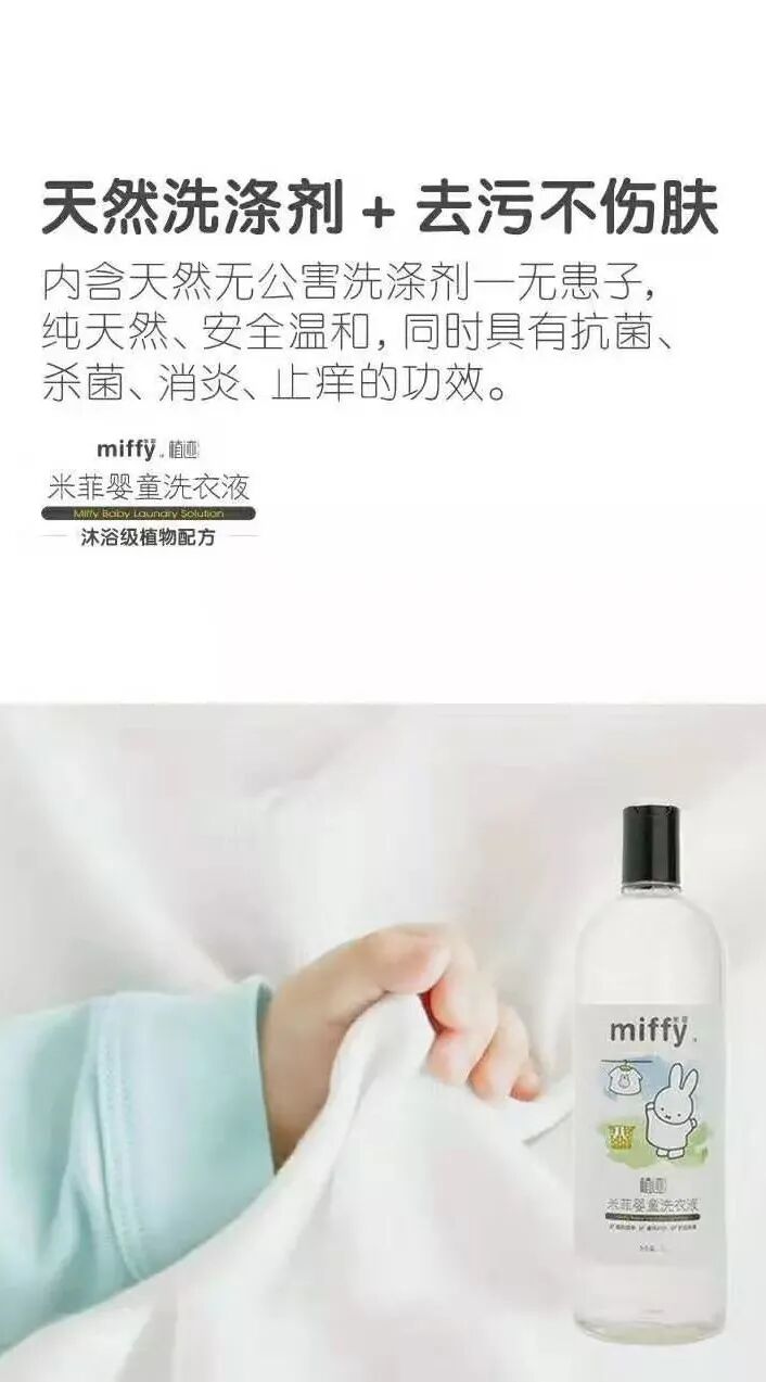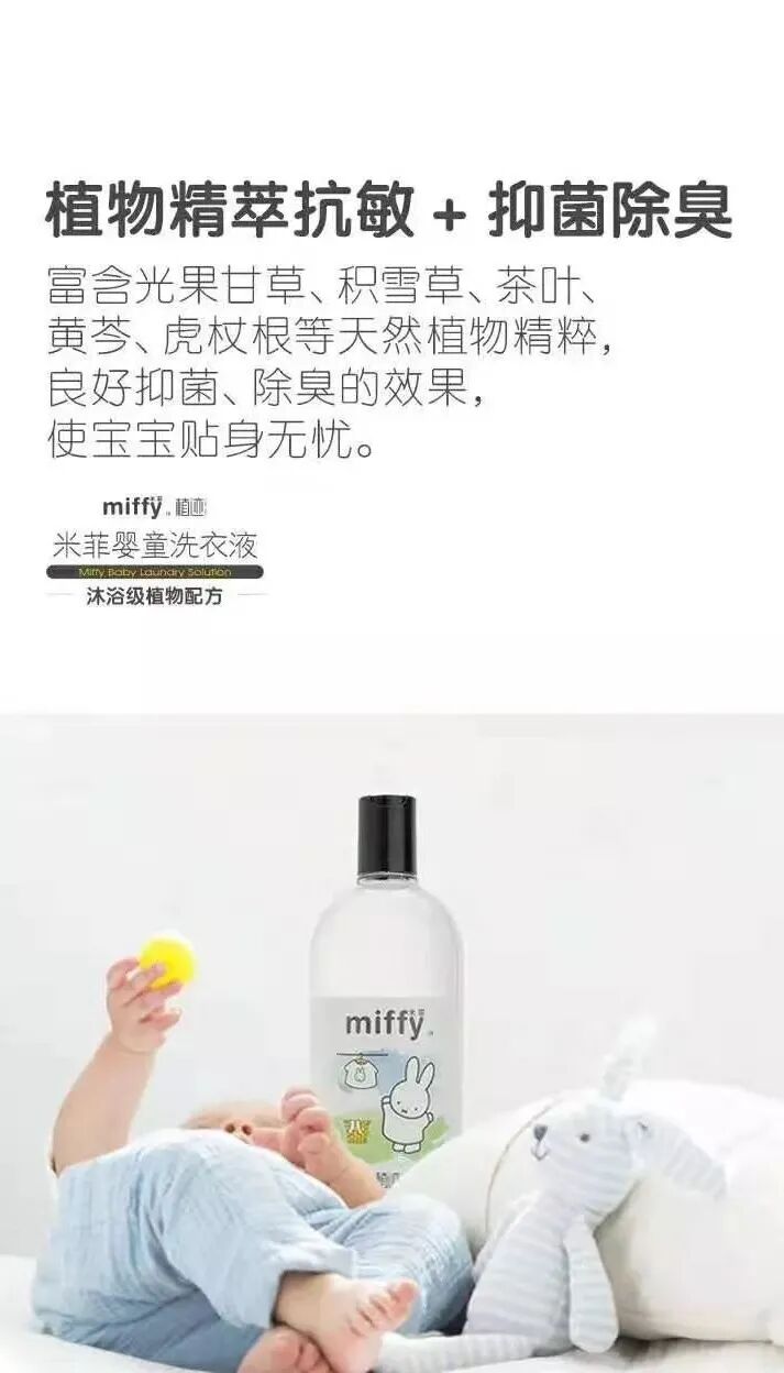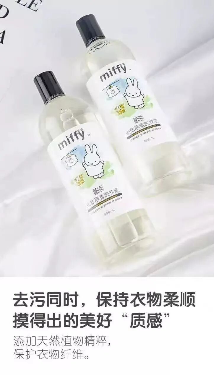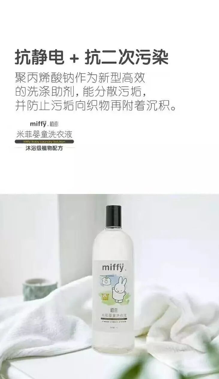 米菲婴童洗衣液,添加天然植物精粹,保护衣物纤维~