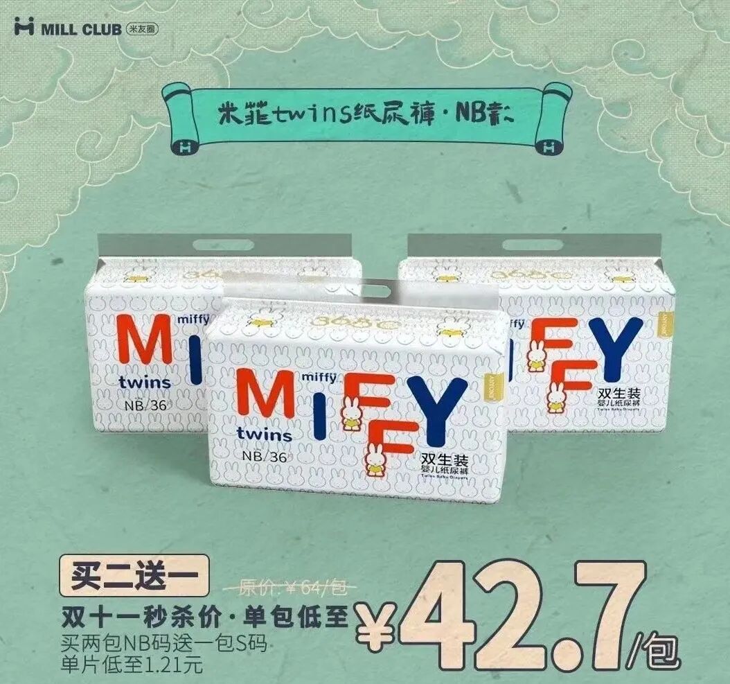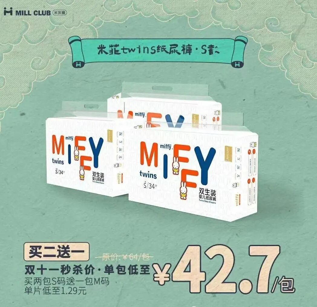 这个双十一要给你最好的,也要给你最划算的,米菲新款双生装婴儿纸尿裤,给宝宝极致柔软呵护