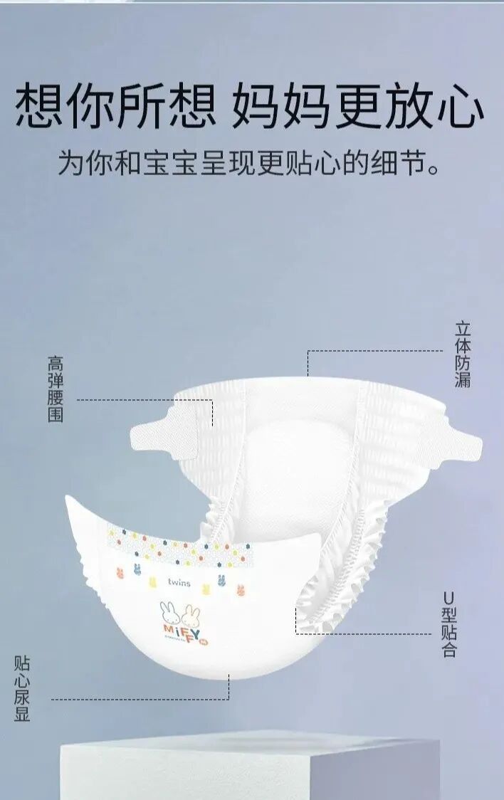 想你所想,妈妈更放心,米菲为你和宝宝呈现更贴心的细节。裸感奢薄,透气干爽,瞬吸锁水,不易断层起坨,给宝宝云柔般呵护。