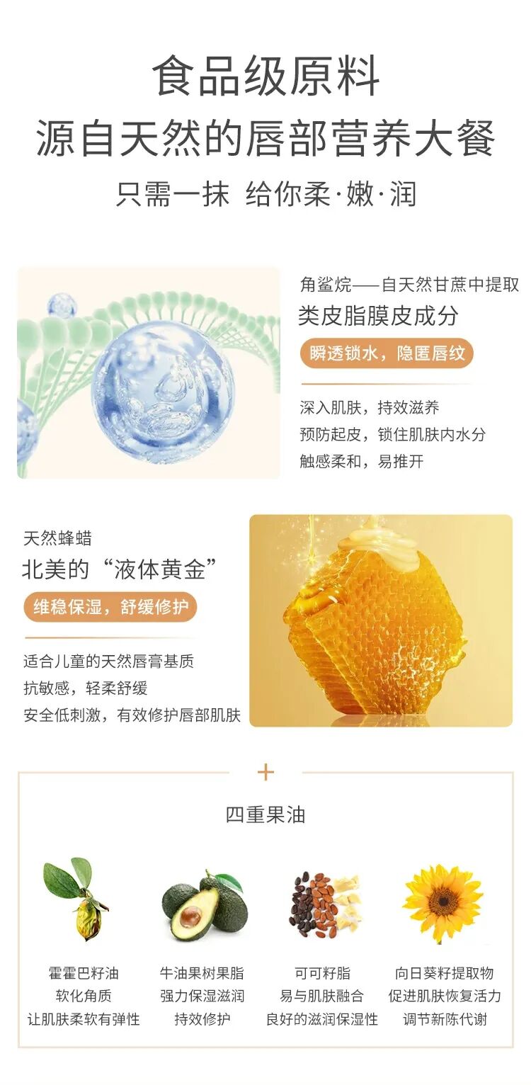 柔润饱满:维稳保湿、舒缓修护宝宝唇部肌肤