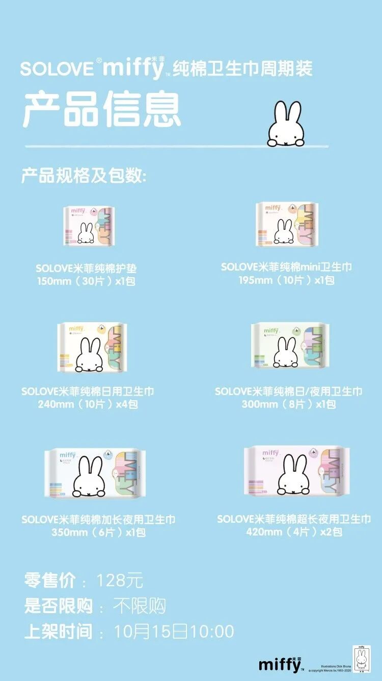米菲棉纯卫生巾周期装 10月15日10:00 上新 |我攒好了久的温和柔爱 现全在部给你