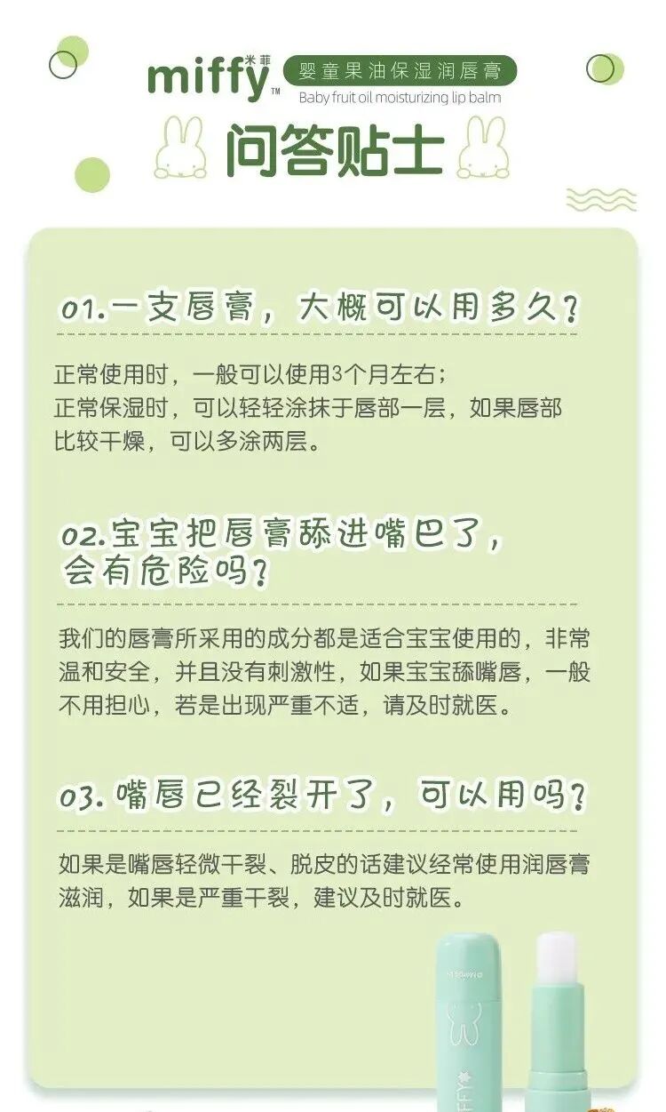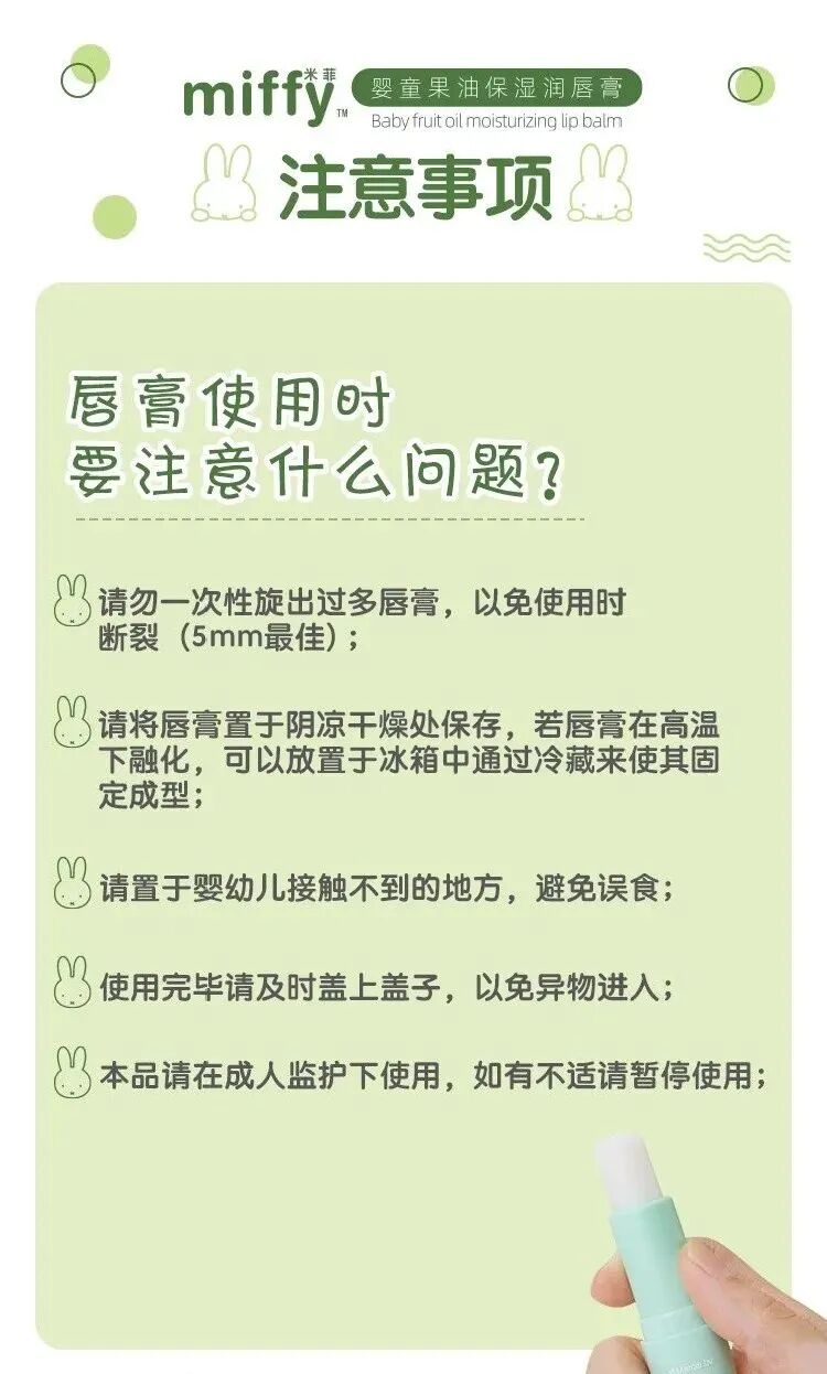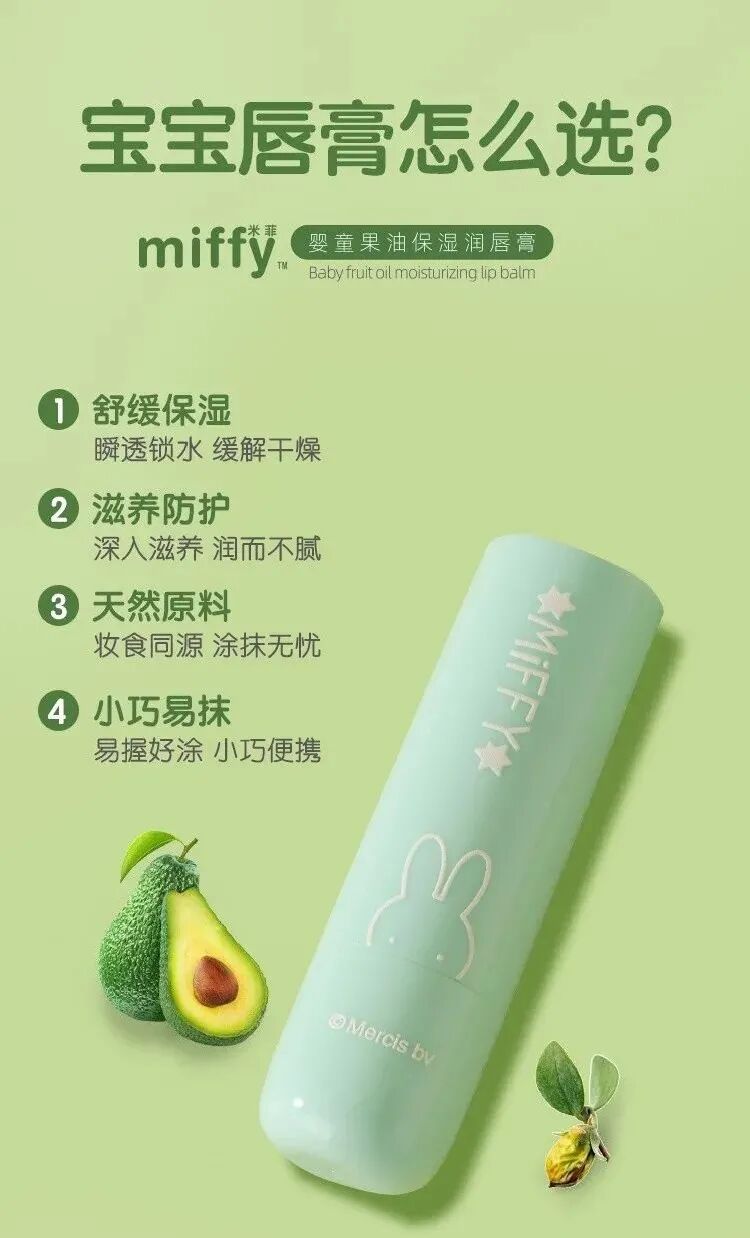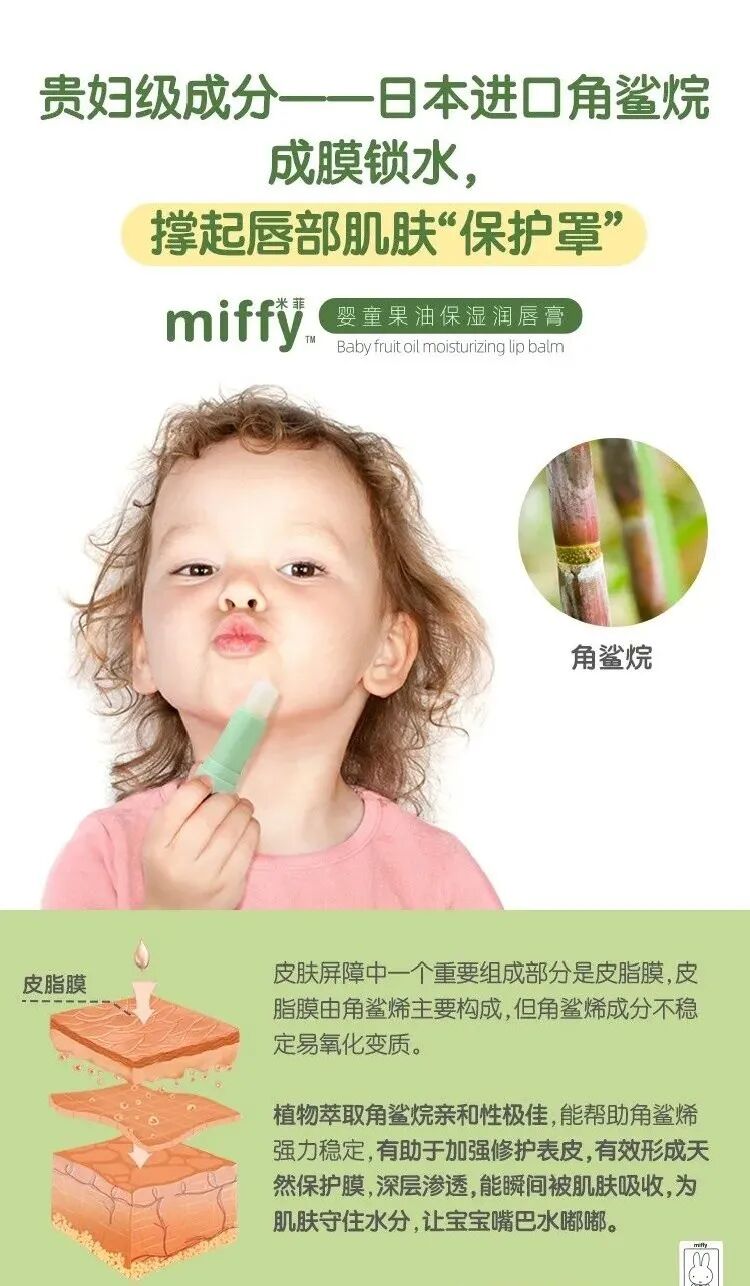 米菲又一新品——婴童果油保湿润唇膏,带给宝宝不一样的安全呵护