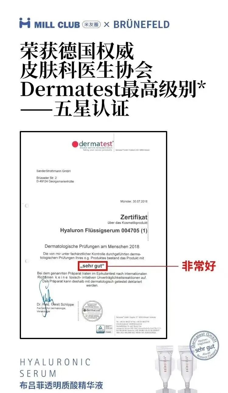 获得德国权威皮肤科医生协会Dermatest最高级别认证,孕妇、敏感肌可用。