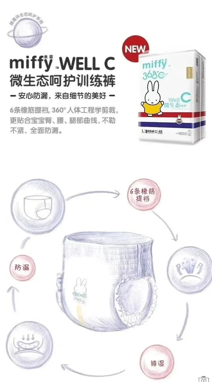 拒绝负重、粗糙感,柔软包裹小嫩臀~米菲微生态呵护训练裤,自然棉亲肤表层,减少尿液中氨对肌肤伤害!