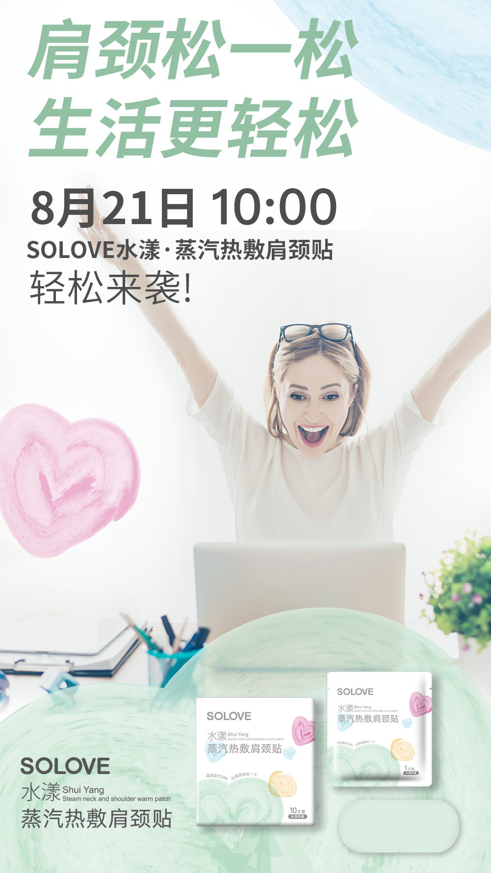 SOLOVE 水漾·蒸汽热敷肩颈贴,在看书、刷剧、玩手机的时候,哪里不舒服贴哪里,肩颈松一松,生活更轻松。