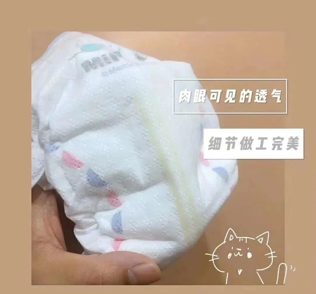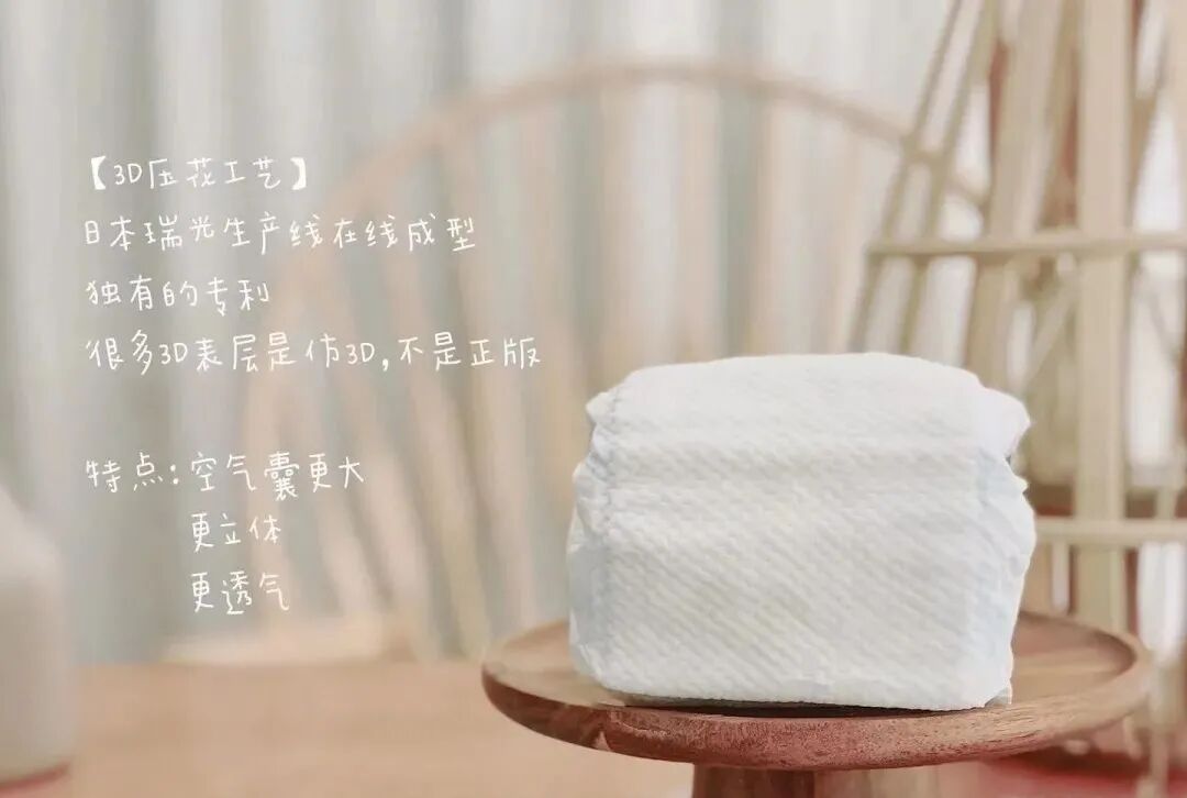 第三压花工艺,奢薄款是6D表层,更大程度减少午皮肤接触面,减少红屁屁的可能。