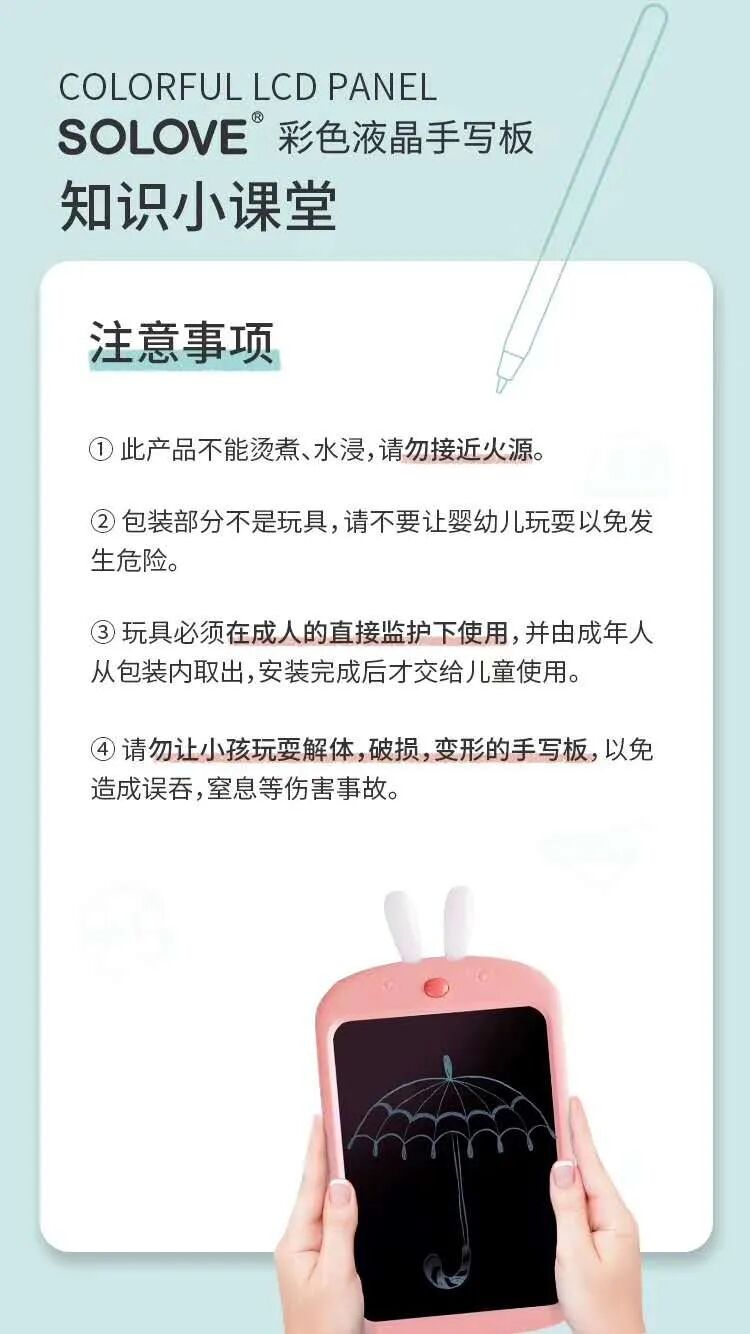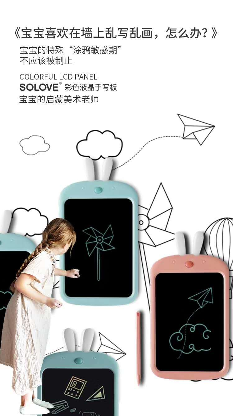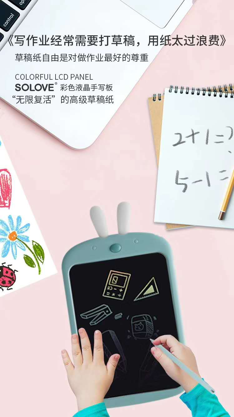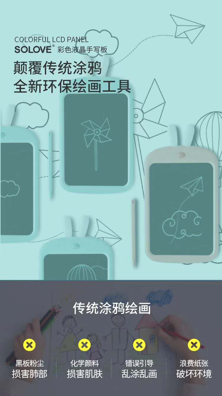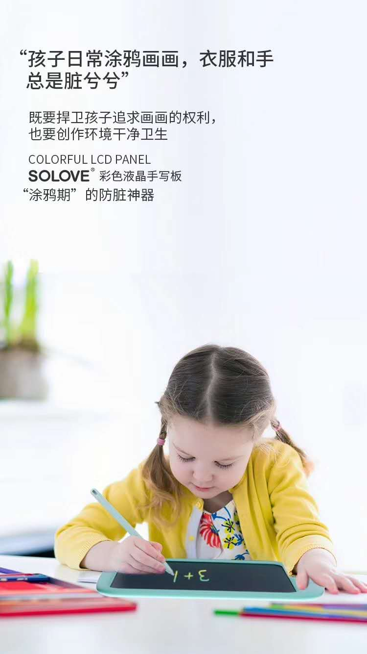 绿色环保理念,拒绝纸张浪费。SOLOVE彩色液晶写字板