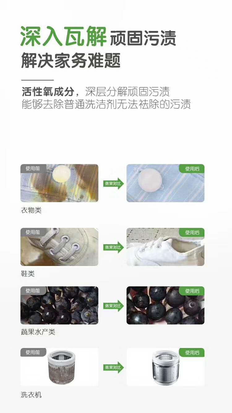 这是一款家居清洁小能手 抑菌率高达99% 轻轻泡一泡、搓一搓 汗渍,奶渍,菜渍,油渍,便渍 … 茶垢、霉渍、果渍 … 各种污渍都可以有效去除 有了这爆炸盐 高效快速 又做回了懒人的感觉 有木有 帮你解决家务难题 真正解放你的双手!
