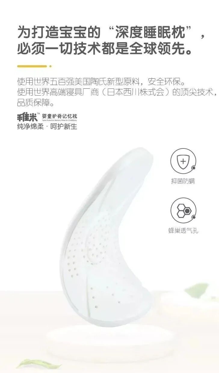 使用世界高端寝具厂商(日本西川株式会)的顶尖技术,品质保障!为打造宝宝的优质“深度睡眠枕”