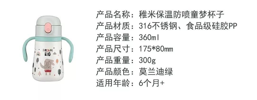 温馨提示:冬天宝宝喝奶慢,奶容易凉,这款保温杯就完美解决了这个问题。还在用奶瓶喝奶的宝宝也能更快戒掉奶瓶,防止奶瓶龋齿的发生。