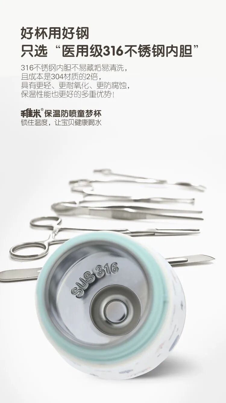 我们稚米保温杯用的是医用级316不锈钢内胆!(不含BPA)