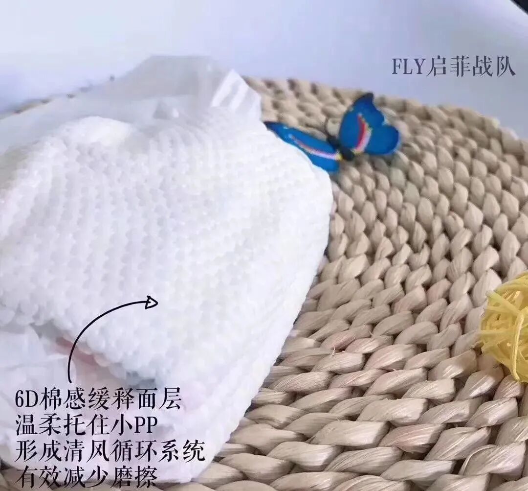 2、3D工艺,点与宝宝肌肤的接触,增加了舒适度;有效预防红屁股和湿疹;超声波压边和产品成型,舒适与柔软度已达极至。