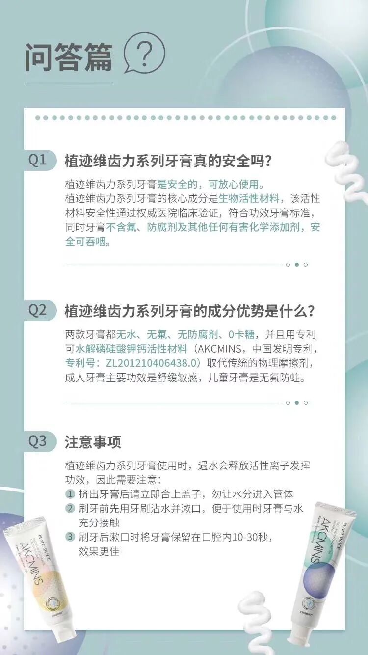 遇水释放活性离子,有效抑制牙菌斑