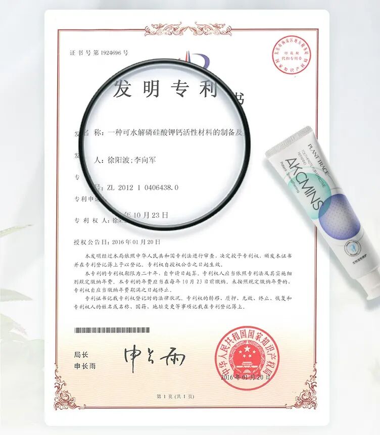 植迹维齿力系列牙膏中所使用的生物活性材料AKCMINS