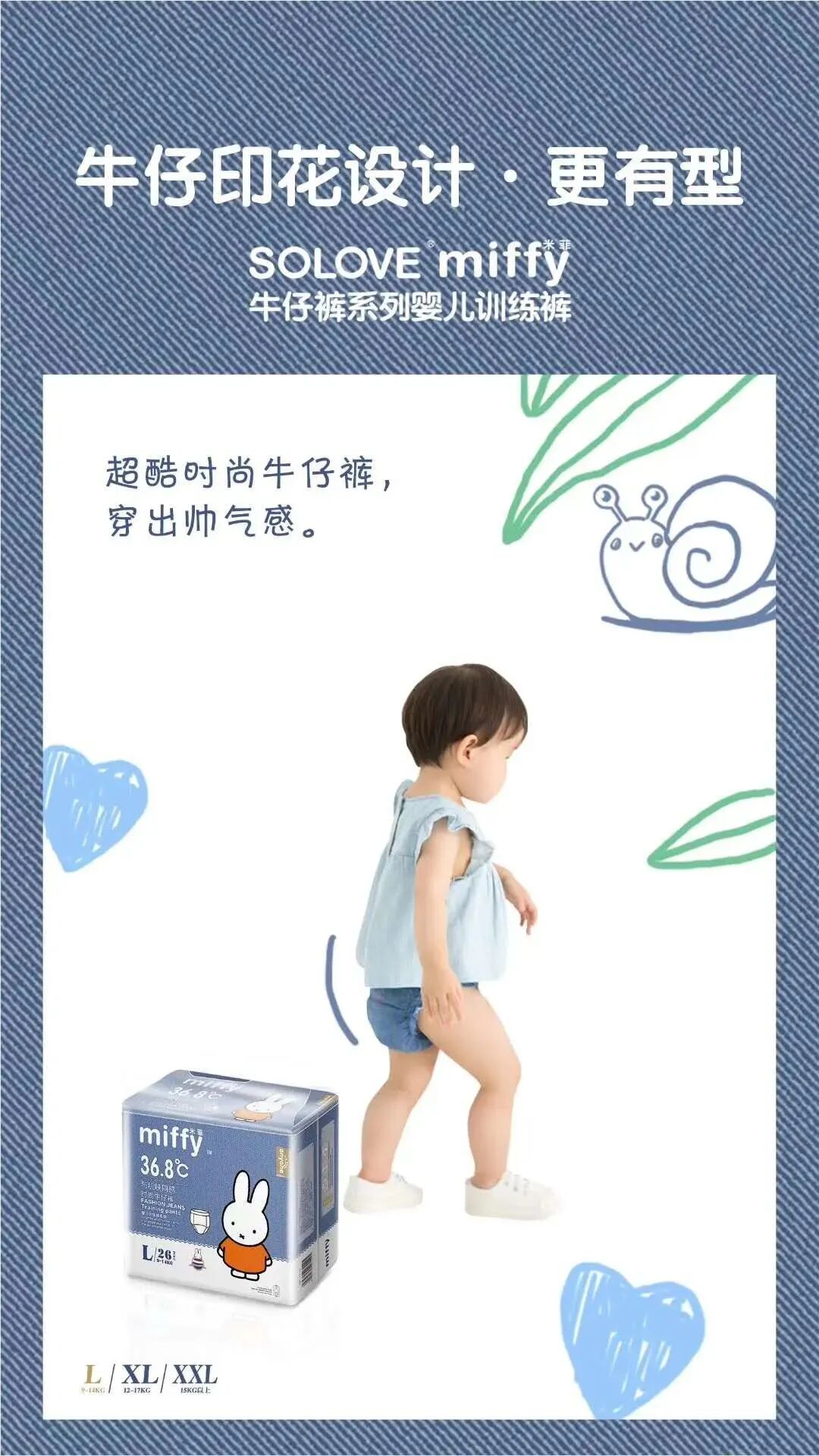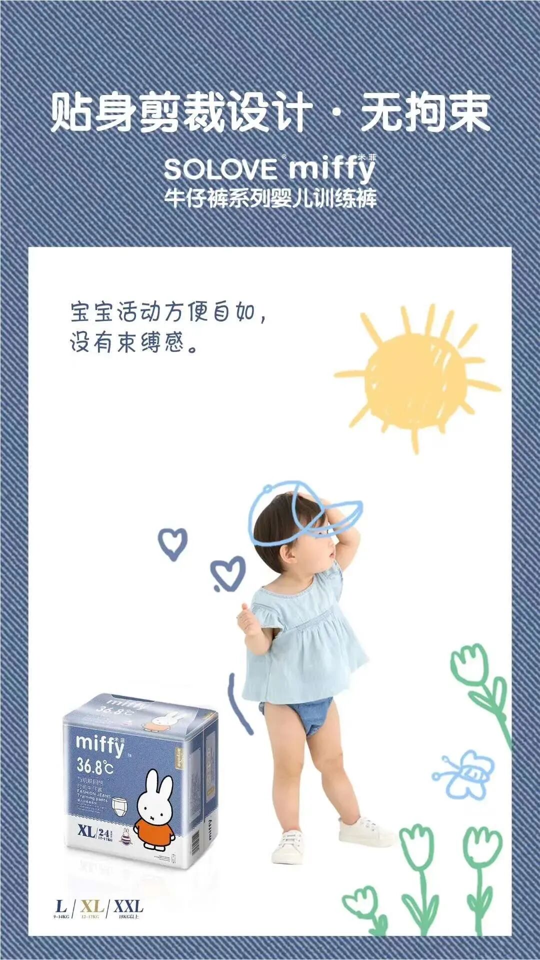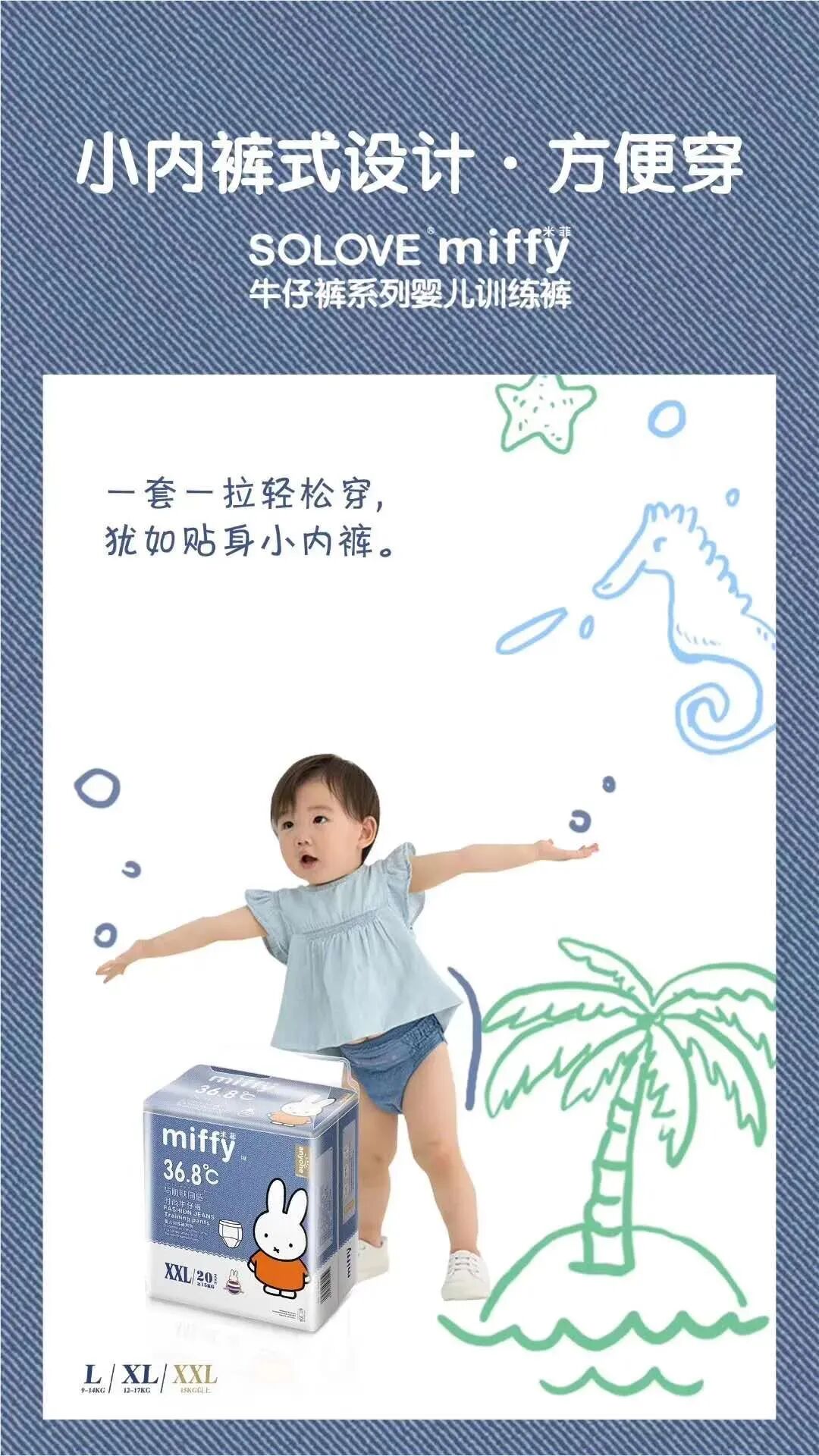 潮童怎么穿?一件牛仔“裤”就够了!夏日潮趣值,让牛仔“裤”来加分,SOLOVE米菲牛仔裤系列婴儿训练裤!