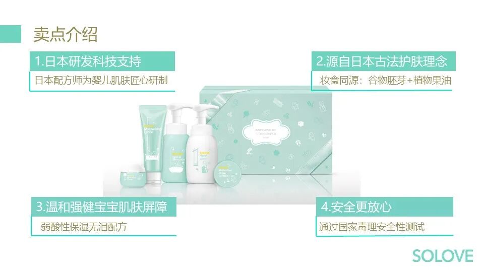 SOLOVE植迹产品配方由日本红道株式会社研发团队遵循"六大X添加”的科研原则精心研制,从源头臻选原料,来用重组天然谷物胚芽与植物果油的配方理念,依照国际化高标准要求,从而设计出符合我们国内要幼儿使用的安全、温和的产品,帮助宝宝强健肌肤屏障,温和可护宝宝成长的每一瞬间。