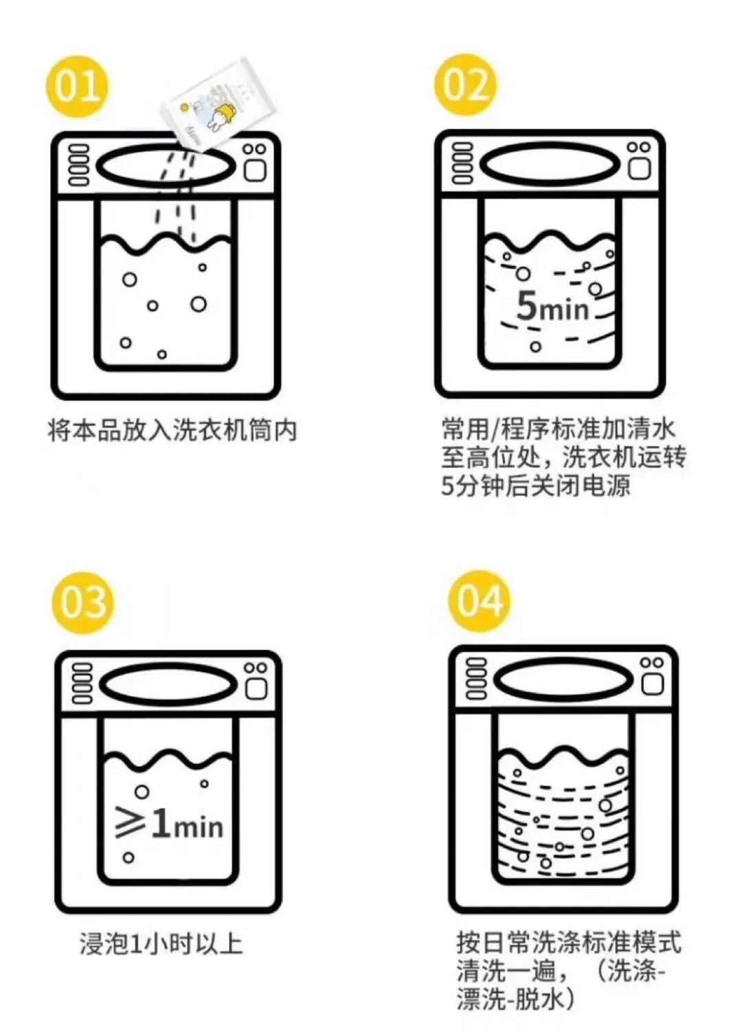 温和洁净配方,不伤机体,安全无腐蚀性,专业养护洗衣机(建议每1-2月对洗衣机槽清洗一次)