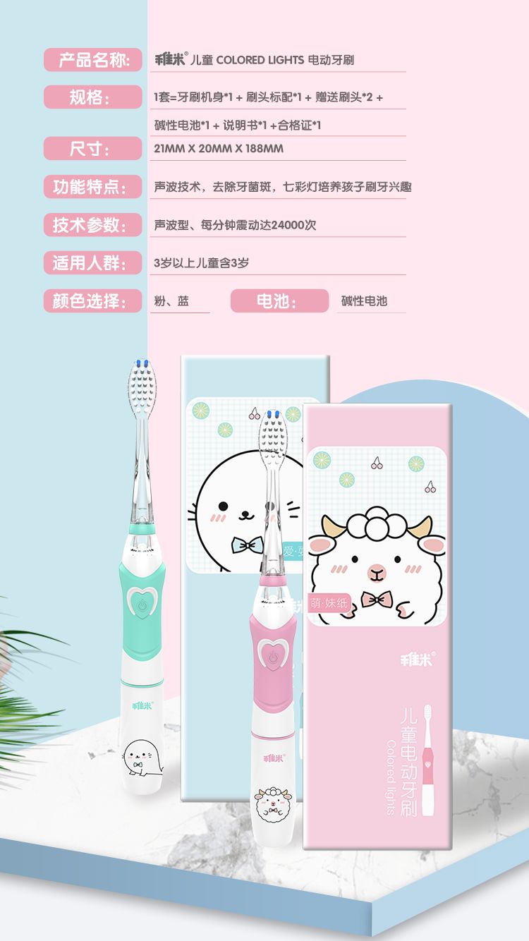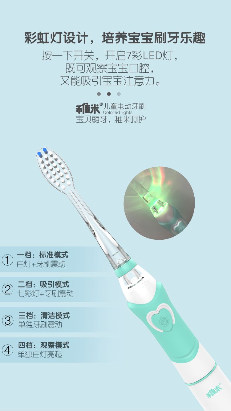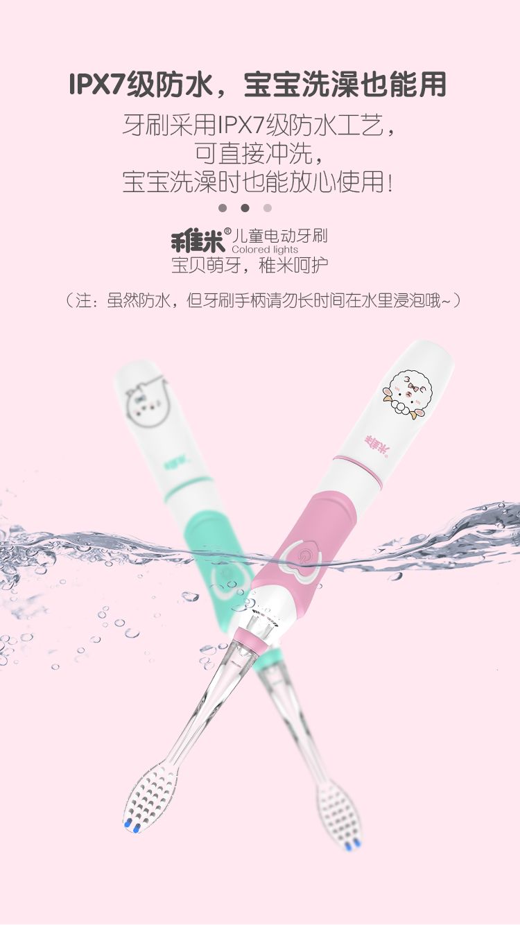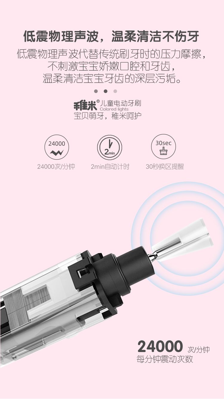 儿童款电动牙刷高频低震声波每分钟24000次微震动。