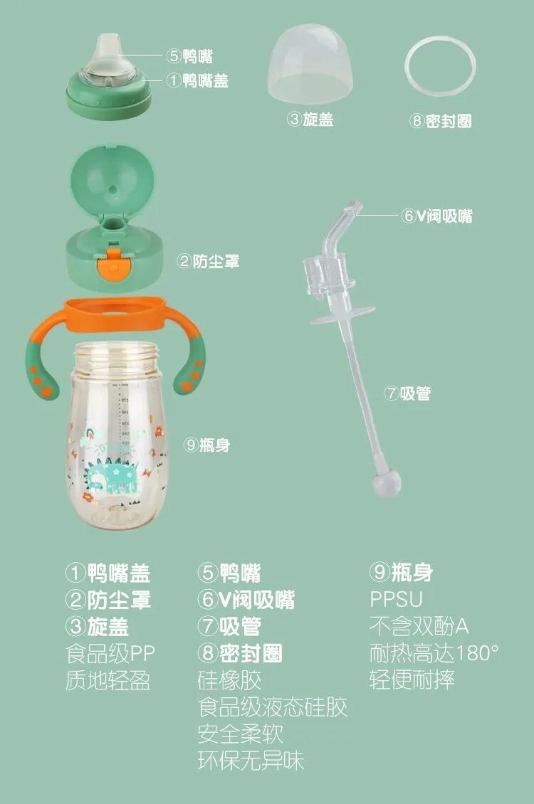 宝宝到八、九个月大的时候,大多数已经可以用双手握住茶杯喝水了,宝爸宝妈们可以从这个阶段开始教导宝宝学习自己喝水。那么一个合适且专业的学饮杯尤为关键了,可以让我们的宝宝爱上喝水戒掉奶瓶。